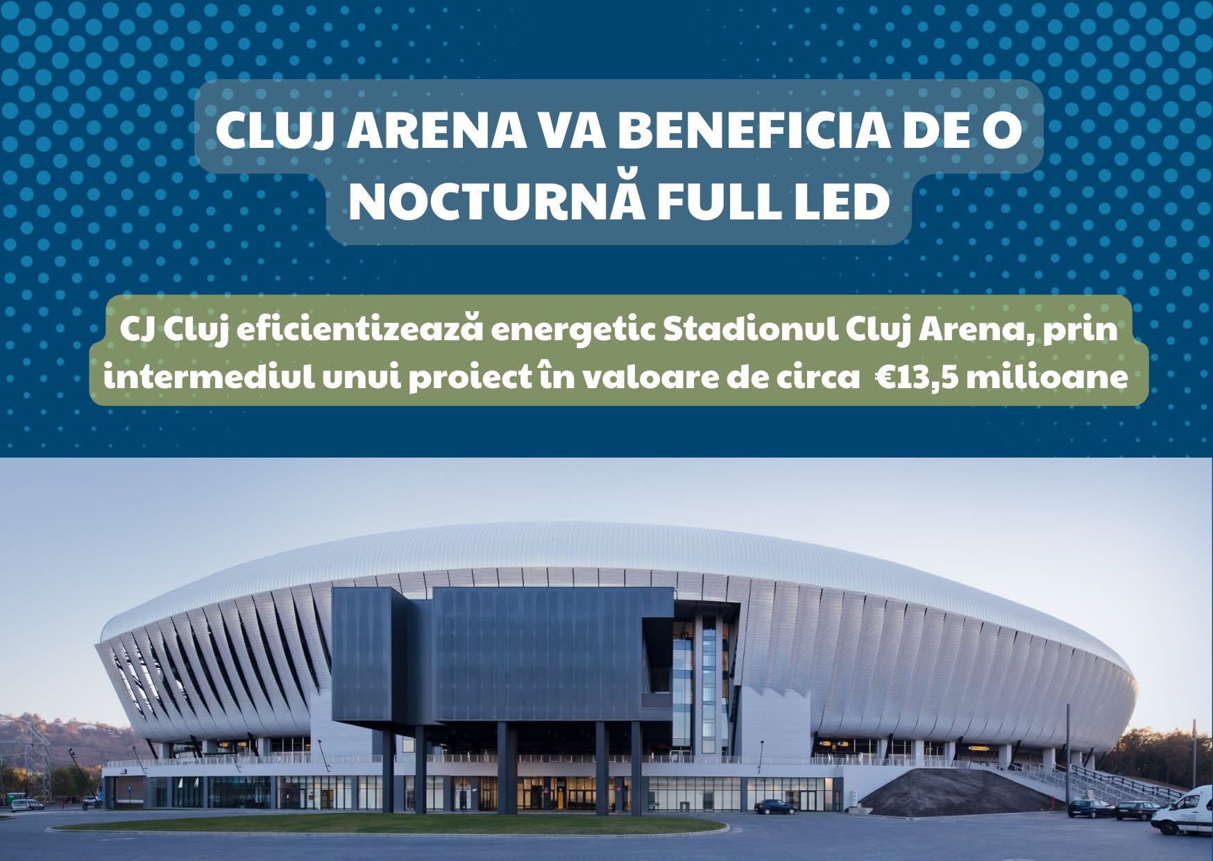 Proiectul de eficientizare energeticฤƒ a Stadionului Cluj Arena prevede ๐’Š๐’Ž๐’‘๐’๐’†๐’Ž๐’†๐’๐’•๐’‚๐’“๐’†๐’‚ ๐’–๐’๐’–๐’Š ๐’”๐’†๐’• ๐’…๐’† ๐’”๐’๐’๐’–๐’•ฬฆ๐’Š๐’Š ๐’•๐’†๐’‰๐’๐’Š๐’„๐’† ๐’Ž๐’†๐’๐’Š๐’•๐’† ๐’”๐’‚ฬ† ๐’”๐’„๐’‚๐’…๐’‚ฬ† ๐’‡๐’‚๐’„๐’•๐’–๐’“๐’Š๐’๐’† ๐’”ฬฆ๐’Š ๐’”๐’‚ฬ† ๐’ˆ๐’†๐’๐’†๐’“๐’†๐’›๐’† ๐’Š๐’๐’…๐’†๐’‘๐’†๐’๐’…๐’†๐’๐’•ฬฆ๐’‚ฬ† ๐’†๐’๐’†๐’“๐’ˆ๐’†๐’•๐’Š๐’„๐’‚ฬ†, respectiv: