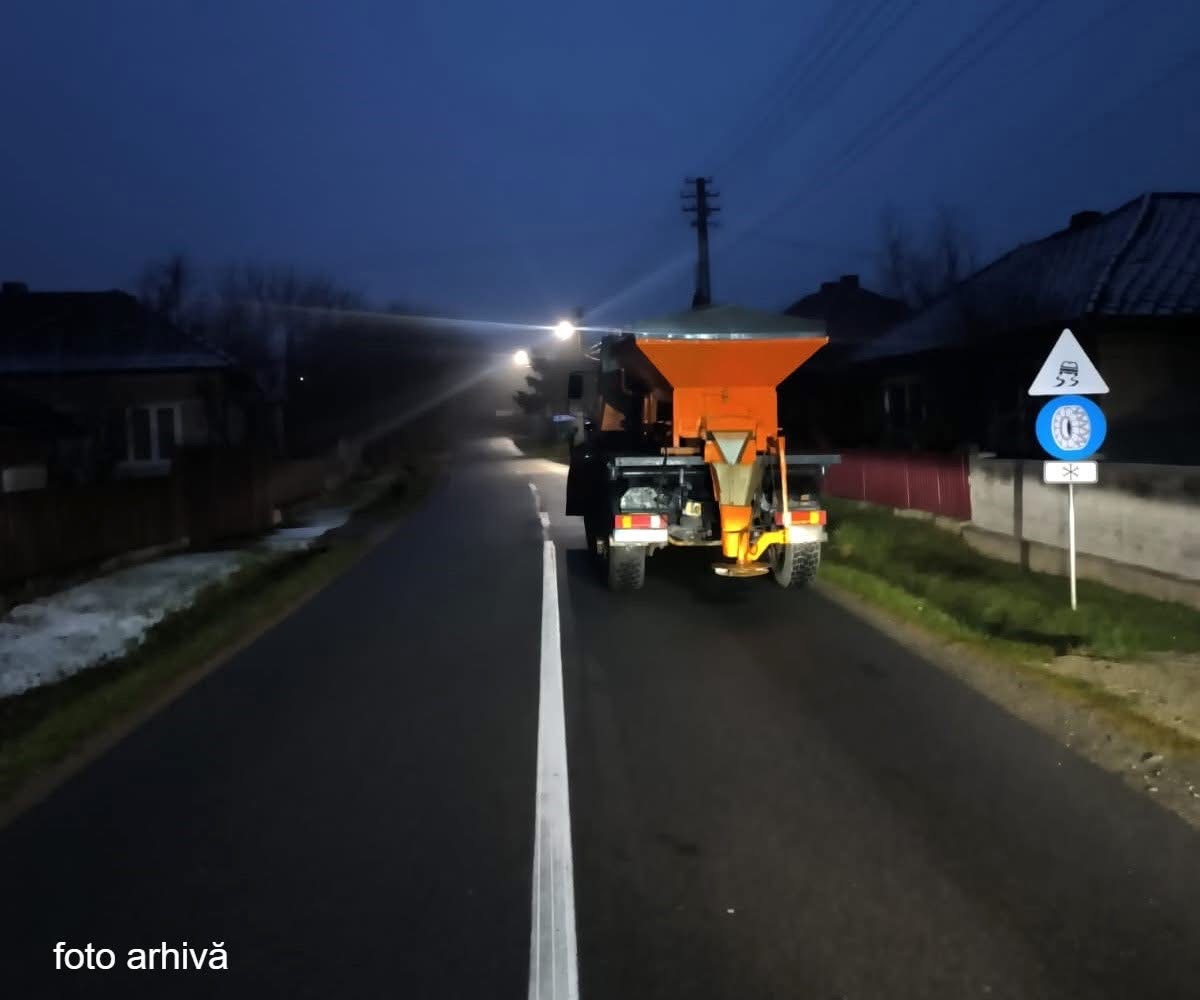 Tot รฎn aceastฤ zonฤ, รฎn cursul nopศii ศi al acestei dimineศi s-a acศionat pe 15 drumuri judeศene, cu 12 utilaje. รn cadrul acestor acศiuni a fost folositฤ o cantitate รฎnsumatฤ de 190 de tone.