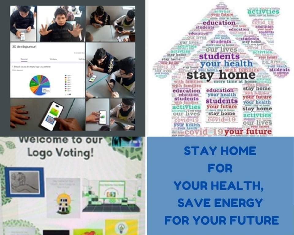 În acest sens, proiectul „𝐒𝐭𝐚𝐲 𝐇𝐨𝐦𝐞 𝐟𝐨𝐫 𝐘𝐨𝐮𝐫 𝐇𝐞𝐚𝐥𝐭𝐡, 𝐒𝐚𝐯𝐞 𝐄𝐧𝐞𝐫𝐠𝐲 𝐟𝐨𝐫 𝐘𝐨𝐮𝐫 𝐅𝐮𝐭𝐮𝐫𝐞” își propune ca elevii să internalizeze modalitățile de economisire a energiei în timpul în care stau acasă, ca urmare a situației cauzate de pandemia de COVID-19. Cu diferite activități lunare și prin utilizarea unor instrumente web 2.0, atât elevilor cât și profesorilor li se vor oferi informații despre posibilitățile de economisire a energiei la domiciliu. Cursanții și-au verificat cunoștințele privind acest subiect, au desenat logo-uri ale proiectului și au discutat și realizat prezentări.