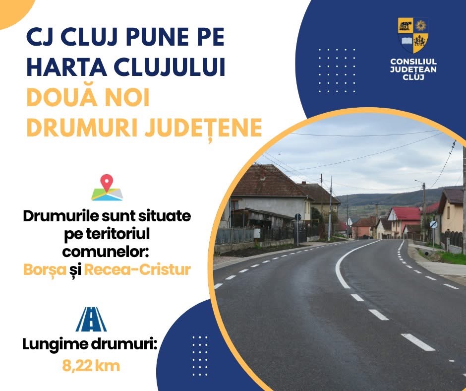 Preศedintele Consiliului Judeศean Cluj, domnul Alin Tiศe, a iniศiat un proiect de hotฤrรขre privind รฎncadrarea a douฤ noi drumuri comunale, situate pe teritoriul comunelor Borศa ศi Recea-Cristur, รฎn categoria drumurilor de interes judeศean.