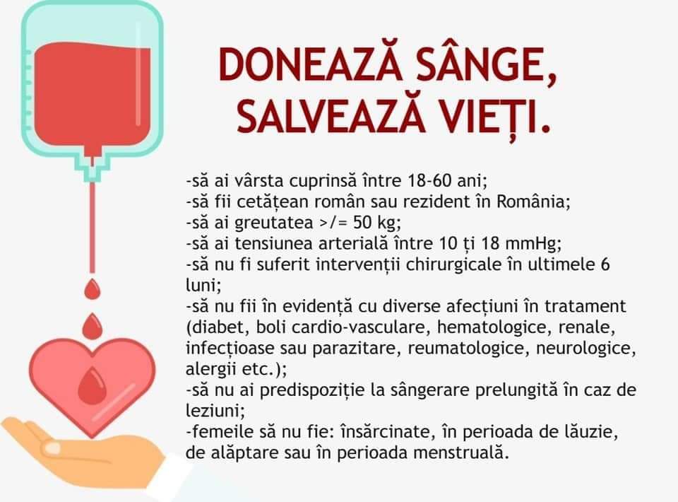 Poate dona sânge persoana care îndeplinește următoarele condiții:
