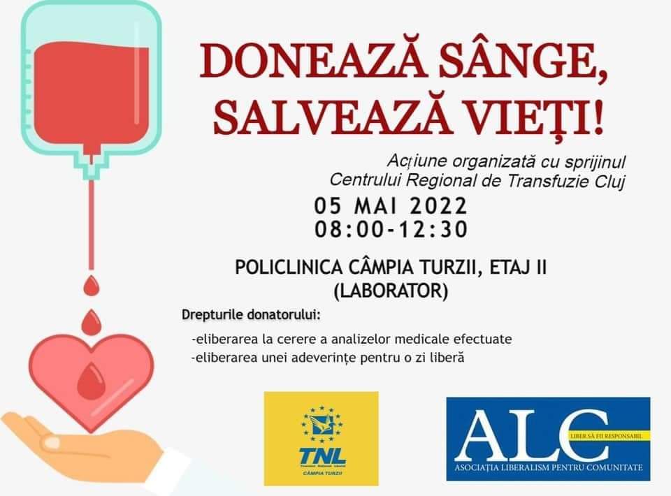 TNL Câmpia Turzii, alături de Asociaţia Liberalism pentru Comunitate, organizează o nouă campanie de donare de sânge – „Donează sânge. Salvează vieţi”.