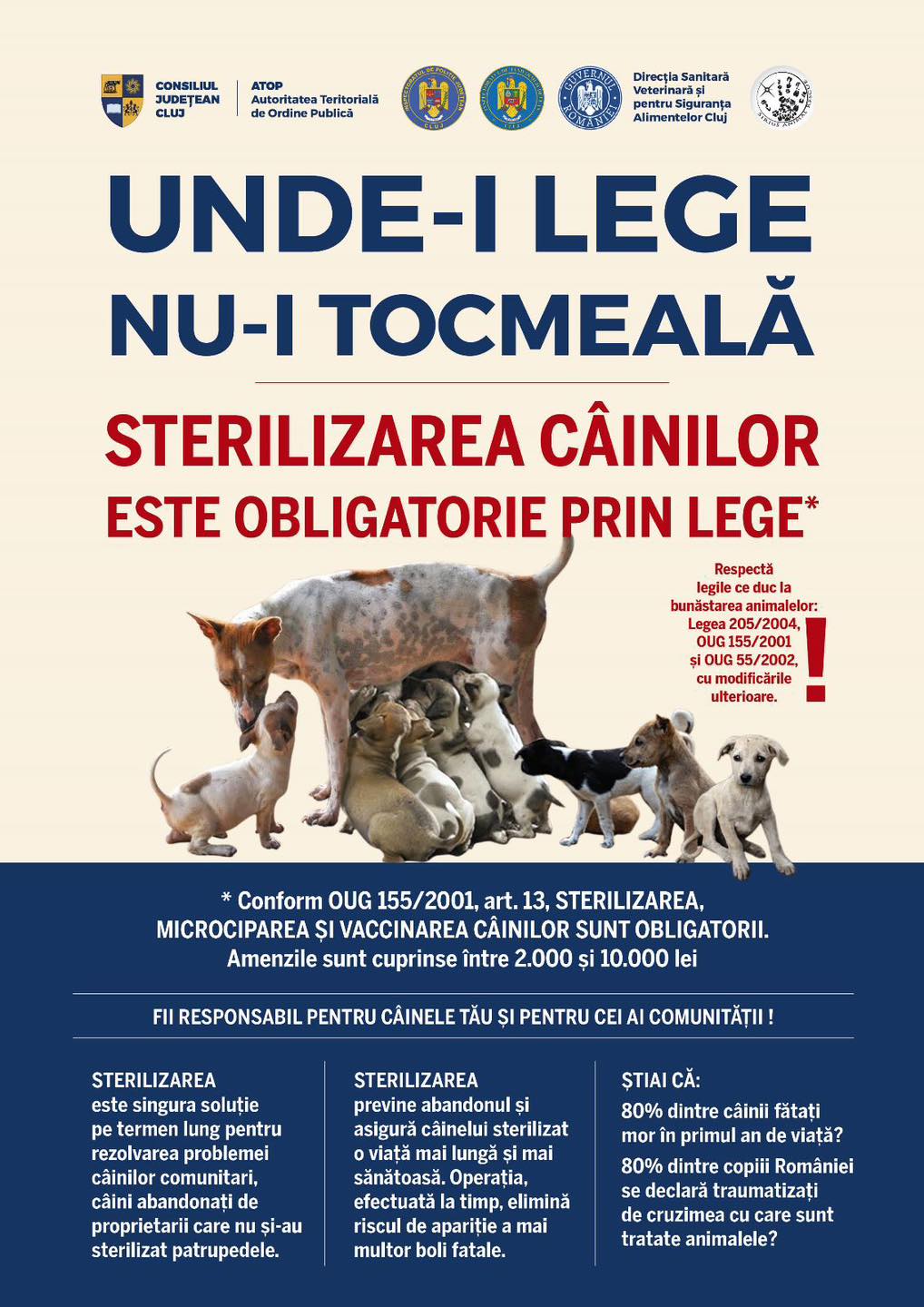 Încurajăm cu căldură toți iubitorii de animale care sunt stăpâni de câini să își asume responsabilitatea față de prietenii lor necuvântători. Respectând legea și contribuind la sterilizarea animalelor, ne asigurăm că sunt în siguranță și sănătoși.