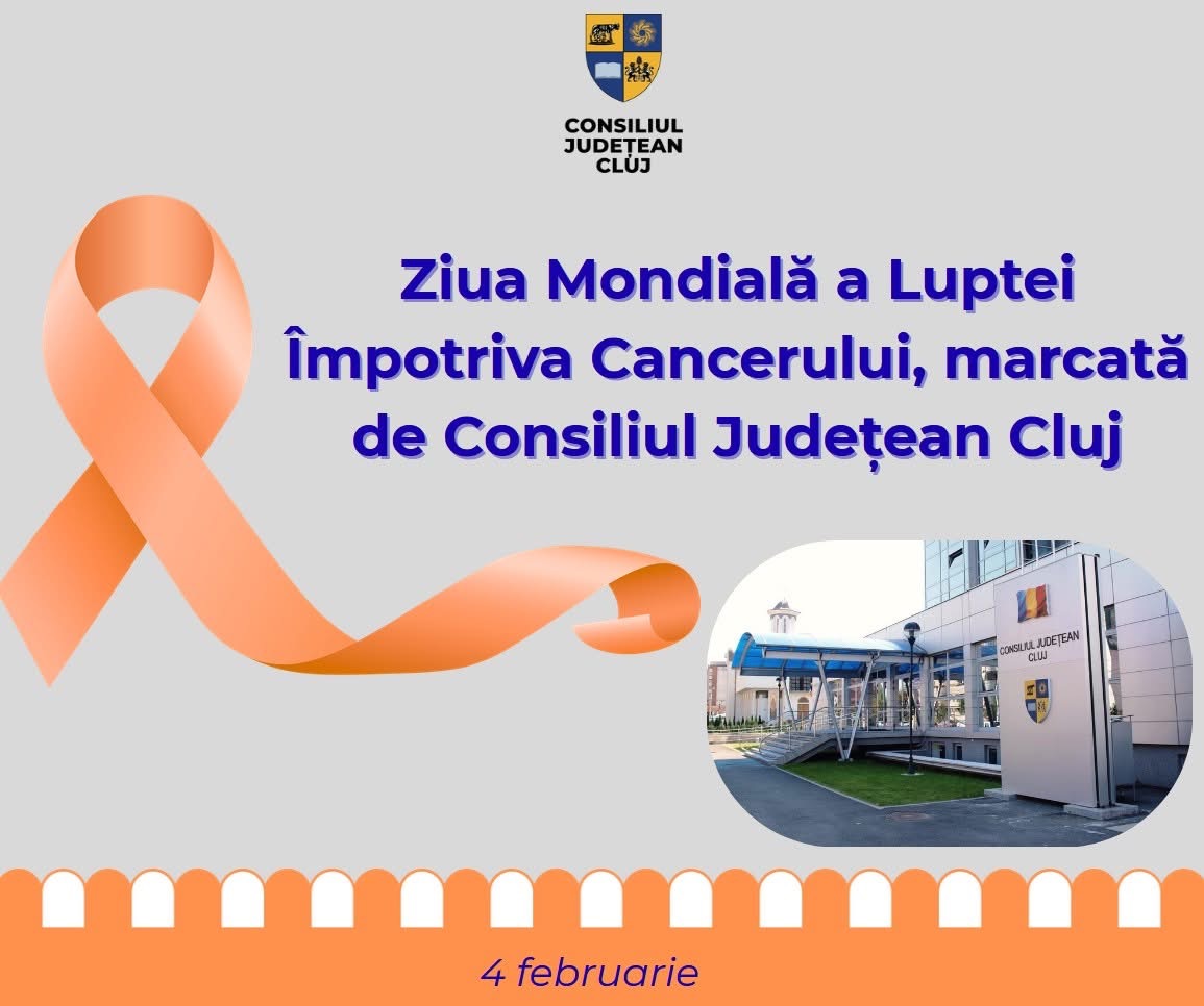 În acest sens, în seara zilei de ➡️ miercuri, 4 februarie 2026, sediul forului administrativ județean, situat în municipiul Cluj-Napoca, pe Calea Dorobanților nr. 106, va fi iluminat în culoarea portocaliu. Prin acest gest simbolic, Consiliul Județean Cluj susține acțiunile ce au ca scop creșterea gradului de conștientizare cu privire la importanța prevenției, depistării precoce și tratamentului cancerului.