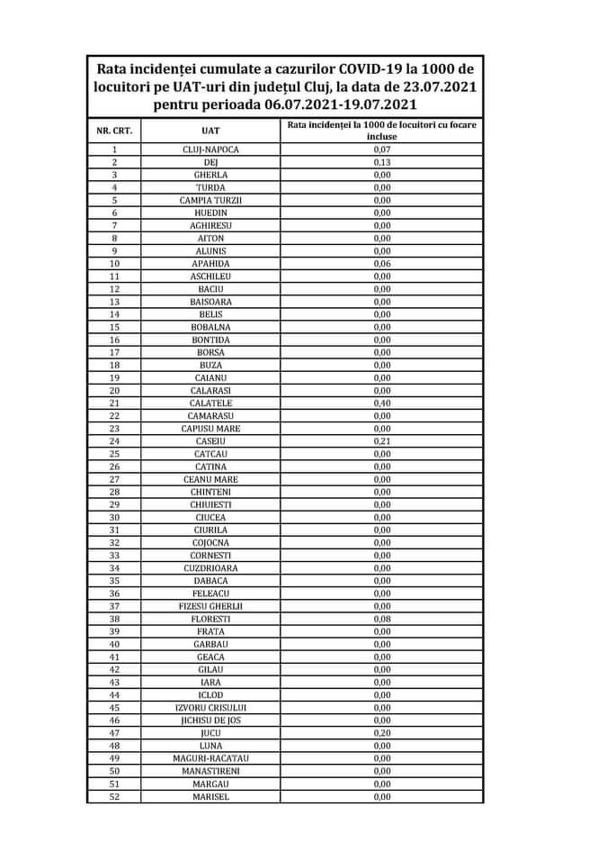 Actualitate Rata incidenței cumulate a cazurilor COVID-19 la 1000 de locuitori pe UAT-uri din județul Cluj, la data de 23.07.2021 pentru perioada 06.07.2021-19.07.2021 ziarul21.ro 23 iulie 2021, 23:10 Share Tweet Share Share Email Comments Related Items:Featured, la data de 23.07.2021 pentru perioada 06.07.2021-19.07.2021, Sticla ariesul turda, 📉 Rata incidenței cumulate a cazurilor COVID-19 la 1000 de locuitori pe UAT-uri din județul Cluj Share Tweet Share Share Email Recommended for you „Blatul Secolului?” – Promovarea în Liga III din Cluj, umbrită de scandaluri și suspiciuni E Sâmbătă de DERBY! FC Câmpia Turzii – Sticla Arieșul Turda Goalkeeperul turdean, Dragoș Jișa, a semnat cu U Cluj Click to comment Leave a Reply Anulează răspunsulComentariile trebuie să respecte regulile de utilizare.Adresa ta de email nu va fi publicată. Câmpurile necesare sunt marcate cu *Comentariu * Nume * Email * Δ Acest site folosește Akismet pentru a reduce spamul. Află cum sunt procesate datele comentariilor tale.