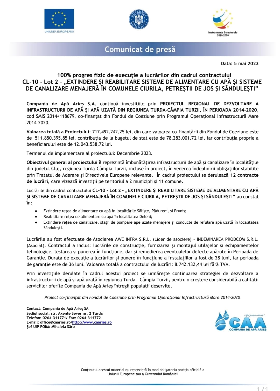 ȘI SISTEME DE CANALIZARE MENAJERĂ ÎN COMUNELE CIURILA, PETREȘTII DE JOS ȘI SĂNDULEȘTI” au constat