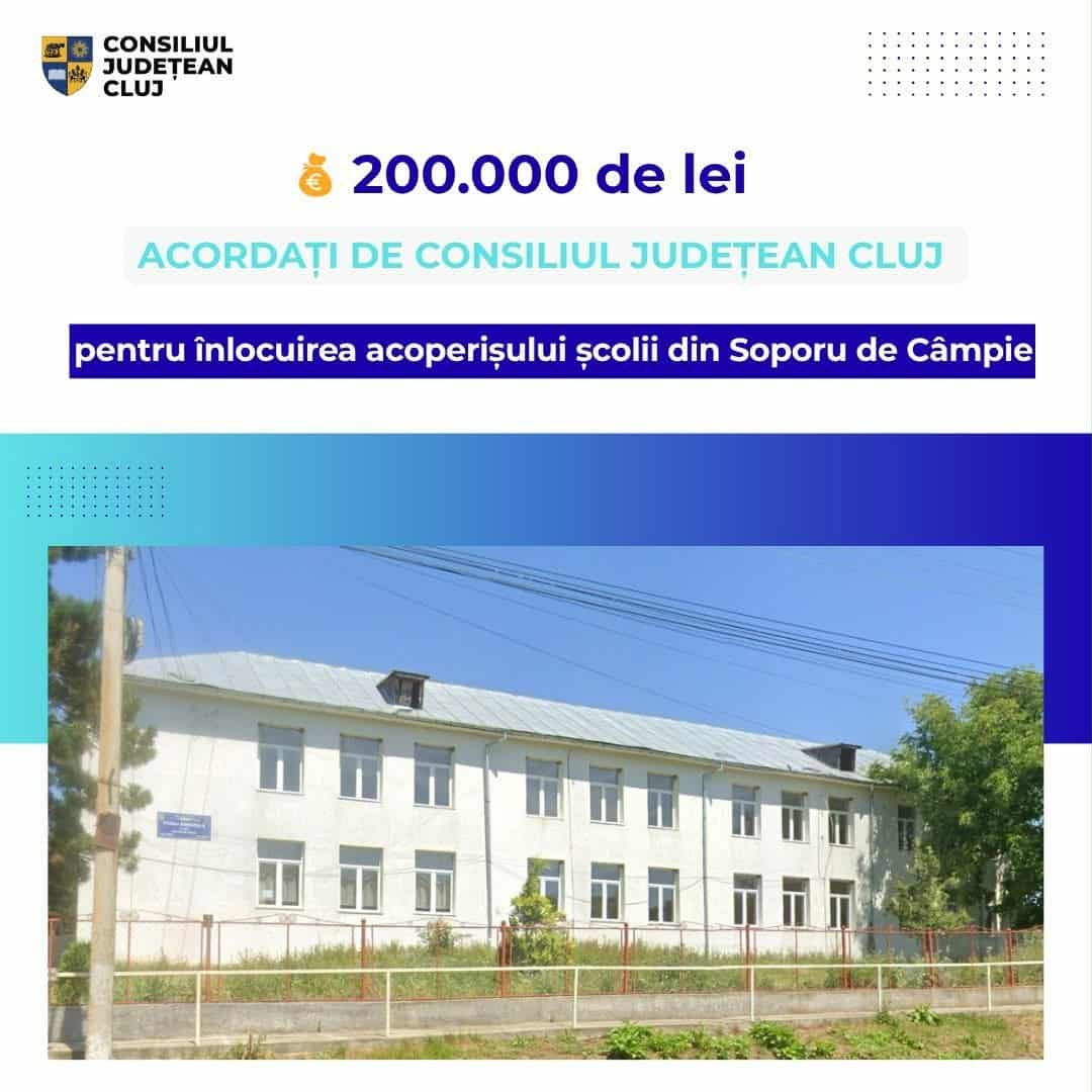 Comunitatea din Soporu de Câmpie va beneficia de o investiție importantă în infrastructura educațională, grație sprijinului acordat de Consiliul Județean Cluj. Suma de 200.000 de lei a fost alocată pentru înlocuirea acoperișului școlii, o lucrare esențială pentru siguranța elevilor și pentru îmbunătățirea condițiilor de învățare.