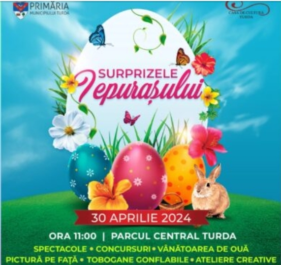 Știm deja că v-ați notat în calendar că în 30 aprilie, de la ora 11:00, ne vedem în Parcul Central la evenimentul ”Surprizele iepurașului”.
