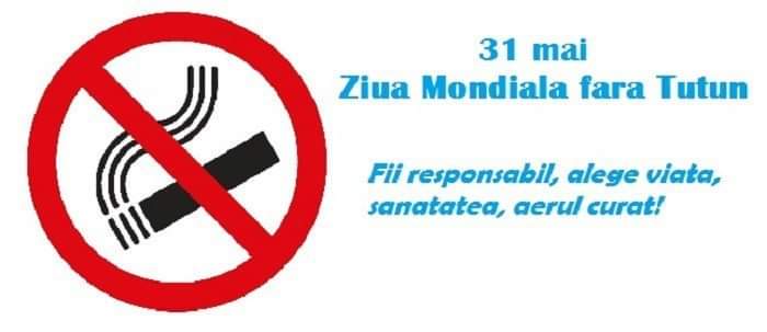 31 MAI – ZIUA MONDIALĂ FĂRĂ TUTUN – În fiecare an, la data de 31 mai, Organizaţia Mondială a Sănătăţii (OMS) lansează campania de marcare a “ZILEI MONDIALE FĂRĂ TUTUN”, pentru a trage un semnal de alarmă cu privire la riscurile de sănătate asociate fumatului, 2021 fiind anul în care mesajul campaniei constă în angajamentul de renunțare la fumat. Din 2019 până în prezent, și în strânsă legătură cu pandemia COVID-19, milioane de fumători au conștientizat importanța sănătății și riscurile la care se expun prin consumul de tutun.