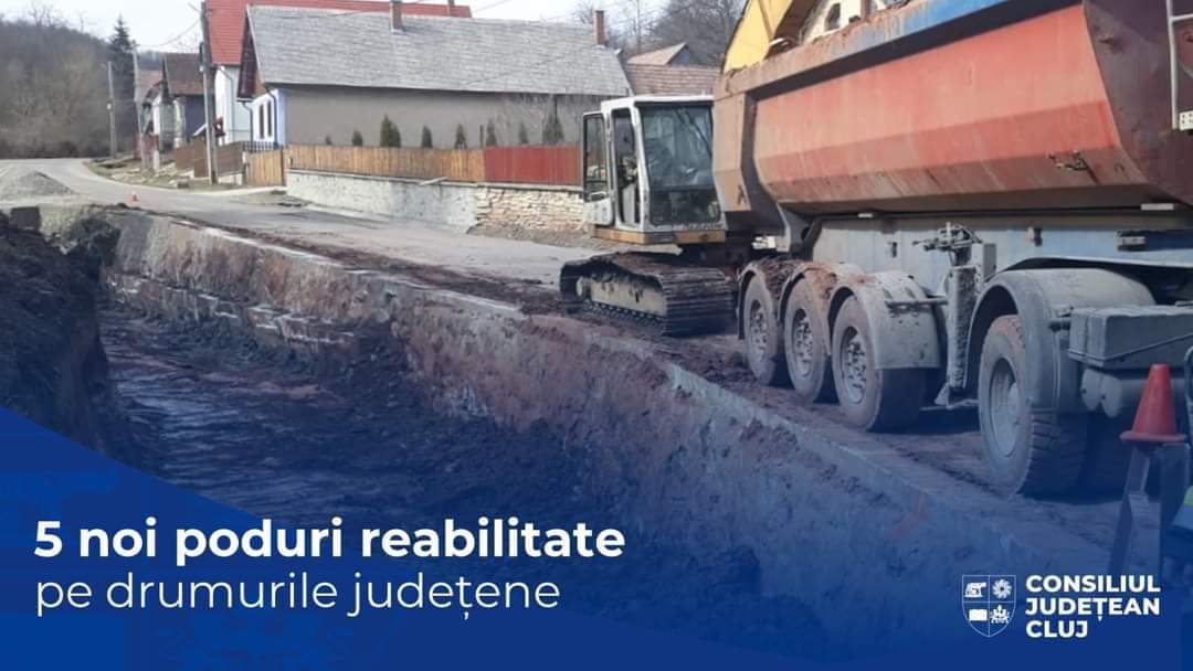 Consiliul Județean Cluj a început reabilitarea a 5 poduri amplasate pe drumurile județene din localitățile Chiuiești, Ciurila, Jichișu de Jos, Mănăstireni și satul Pâglișa, comuna Dăbâca.