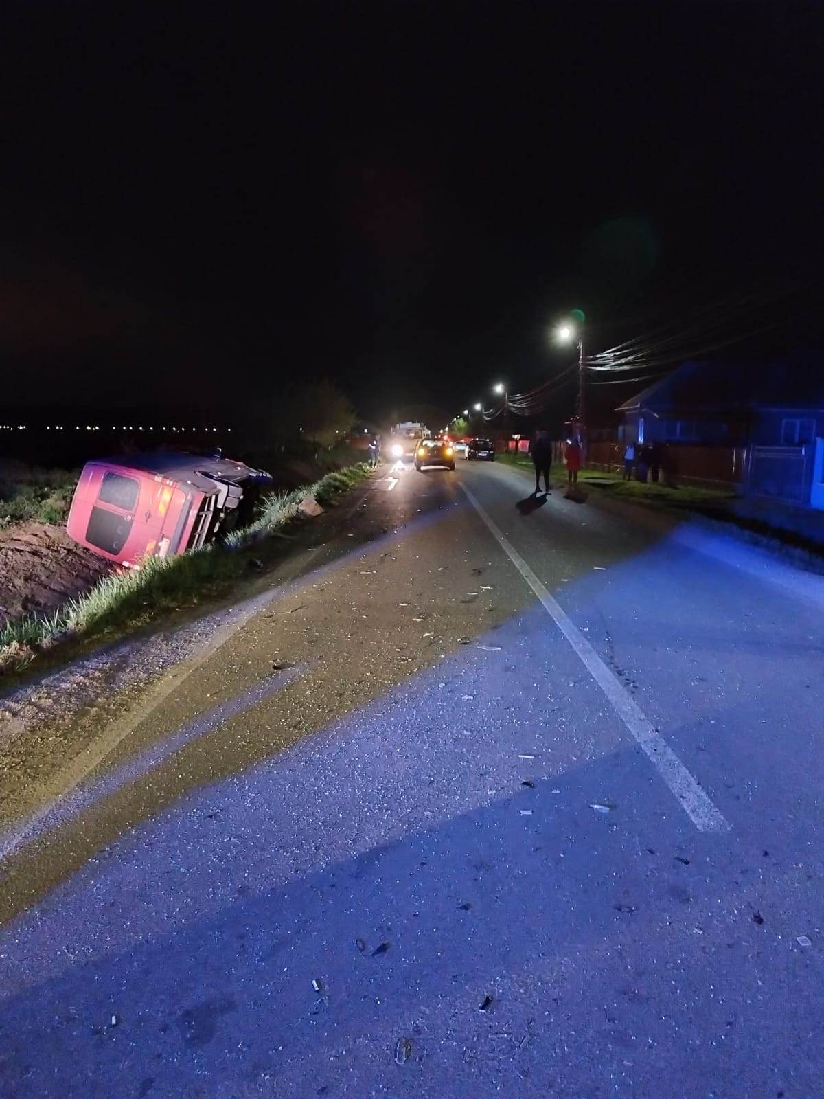 În urma impactului, microbuzul a ieșit în afara părții carosabile, intrând în șanțul din partea stângă a direcției de mers.