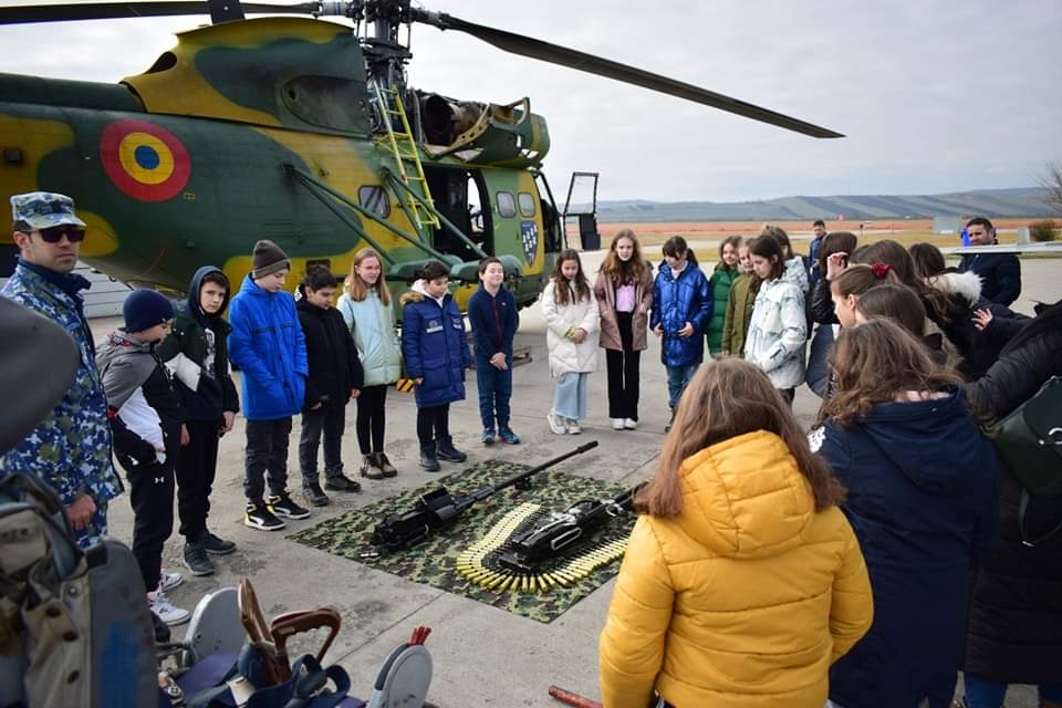 Bucuria de a vedea aeronavele la sol, dar și în zbor, le-a trezit curiozitatea celor mici, fiind cu atât mai interesați de modul de funcționare a acestora. De asemenea, le-a fost prezentat armamentul din dotare, dar și partea istorică a bazei în sala de tradiții.