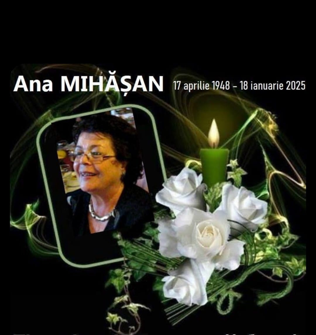 Cu adâncă durere în suflet anunțăm că în 18 ianuarie 2025 a trecut la cele veșnice Ana Mihășan Ignat, cea care a fost profesoară de Limba și Literatura Română și a predat la Școala Gimnazială ”Mihai Viteazul” și la Liceul Teoretic ”Pavel Dan” din Câmpia Turzii, până la pensionare. Trupul neînsuflețit este depus la capela Bisericii Greco-Catolice din centrul orașului iar slujba de înmormântare va avea loc luni 20 ianuarie 2025, ora 12,00.