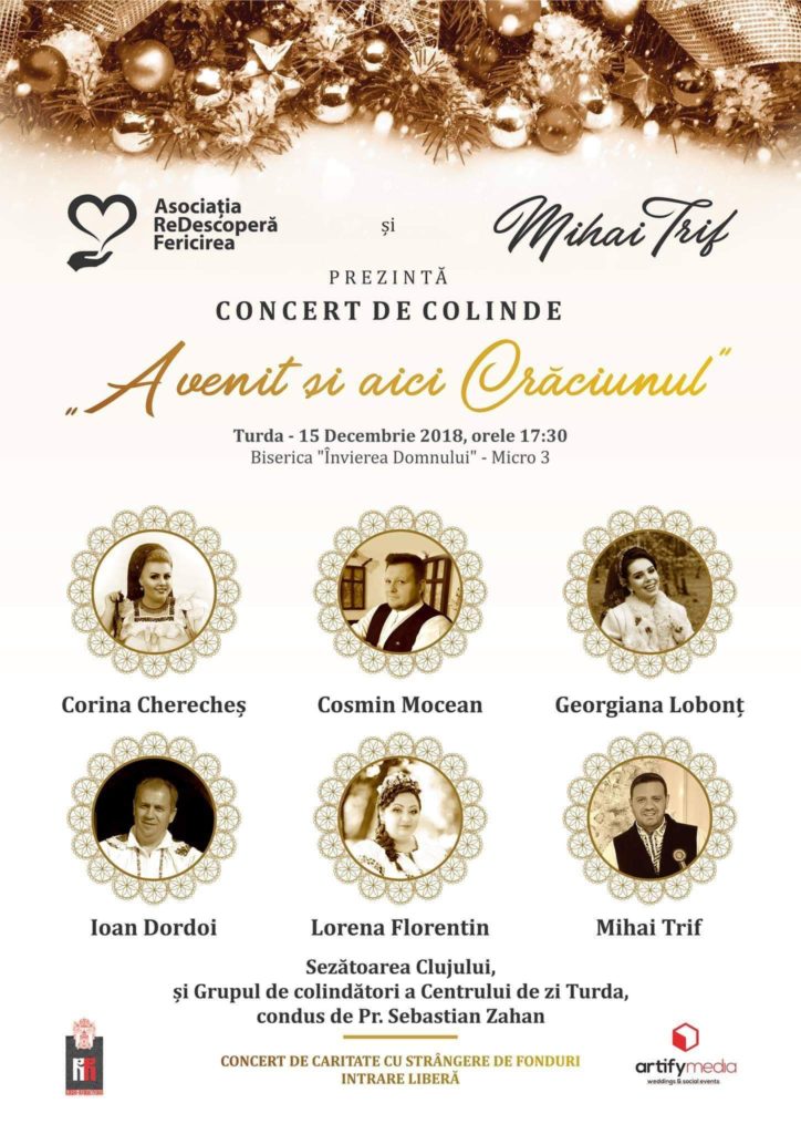 În 15 decembrie, începând cu orele 17:30, la Biserica „Învierea Domnului ” din Micro 3, la invitația lui Mihai Trif, vin cu drag să vă colinde Corina Cherecheș, Lorena Florentin, Georgiana Lobonț, Cosmin Mocean și Ioan Dordoi.