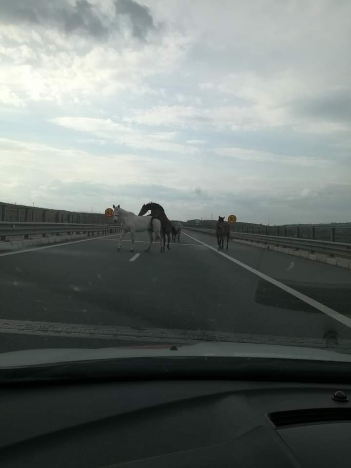 Caz incredibil pe autostrada Turda – Gilău după ce patru cai se plimbau pe banda de mers Turda spre Gilău.