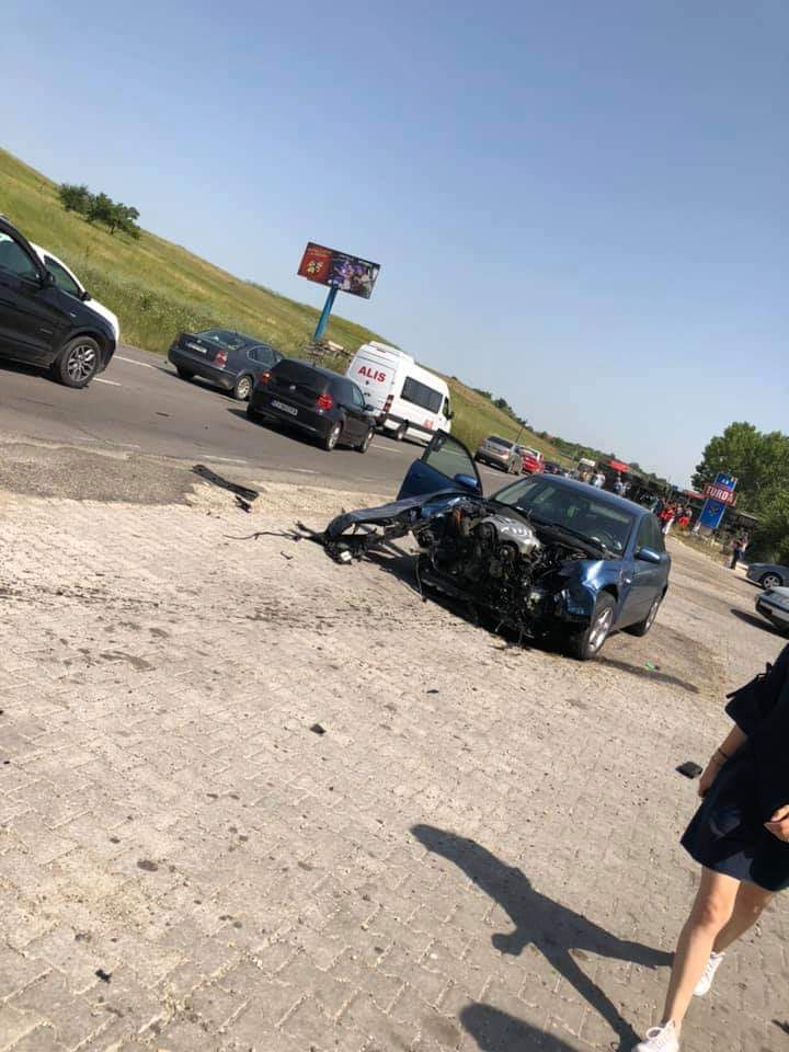 Un impact violent s-a produs între un tir și un automobil.