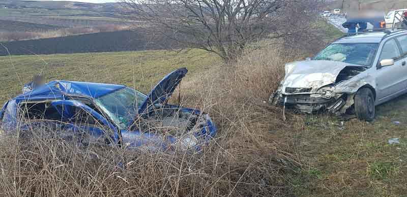 Pompierii au găsit două autoturisme a avariate și ocupanții ieșiți din acestea.