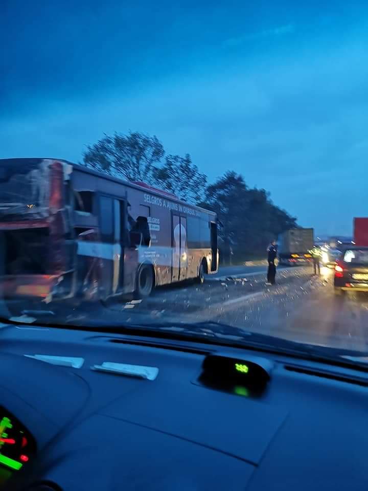 Evenimentul a avut loc în jurul orei 6.00, iar pompierii sosiți de urgență la locul evenimentului au găsit un autotren și un autobuz avariate, cât și șoferul autotrenului prins în cabina vehiculului.