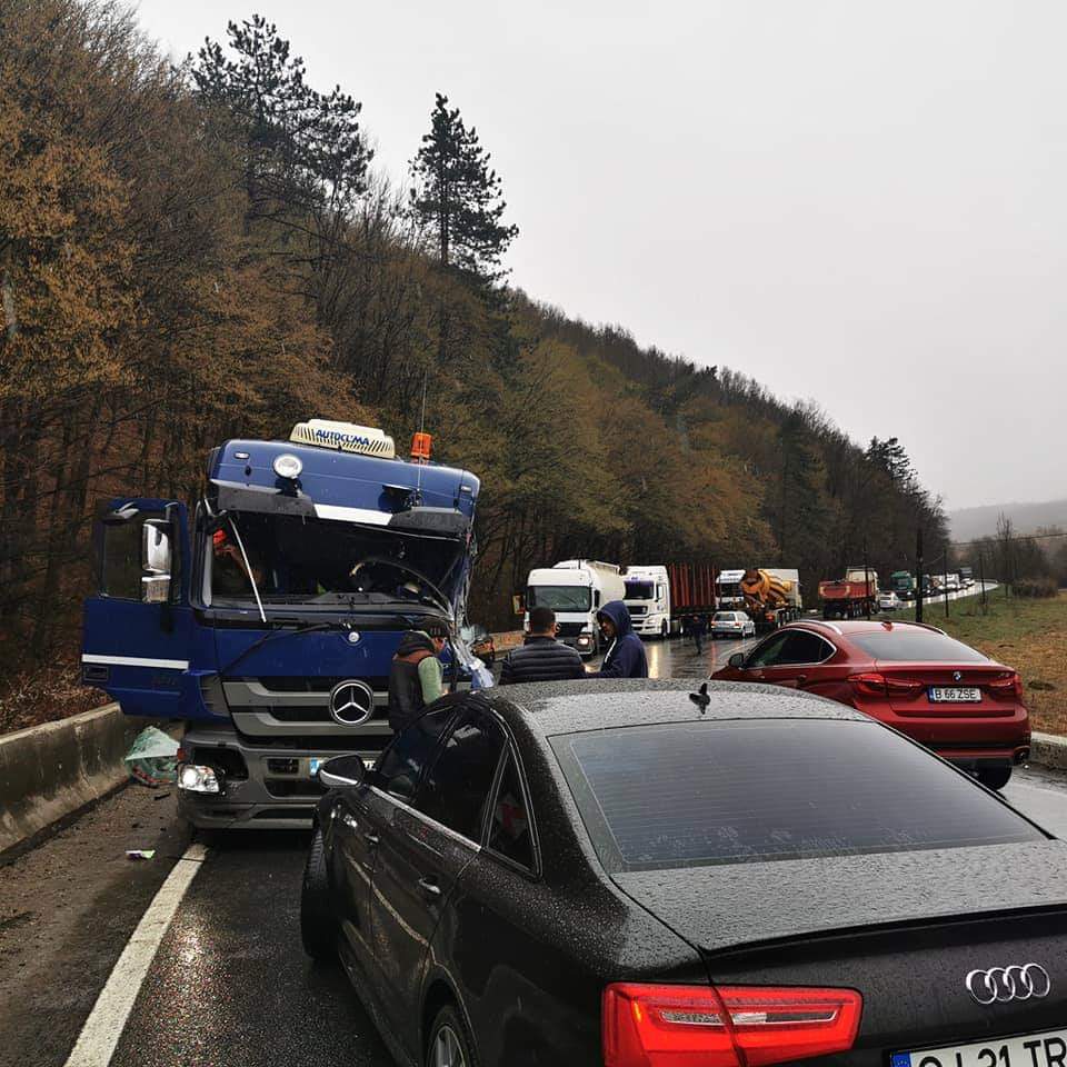 Centrul INFOTRAFIC din Inspectoratul General al Poliției Române informează că pe DN 1 Huedin – Oradea, la kilometrul 537+700 metri, în zona localității Bologa, județul Cluj, a avut loc o coliziune între un camion și o autocisternă, încărcată cu zahăr. O persoană a fost rănită. Circulația este oprită pe sensul Cluj-Napoca – Oradea, desfășurându-se alternativ, dirijat, pe celălalt sens. Conform reprezentantilor Ipj Cluj conducătorul unui autotren care se deplasa pe DN1E60, înspre Cluj – Napoca, pe fondul neadaptării vitezei la condiţiile de drum, carosabilul fiind umed, într-o curbă la dreapta, a pierdut controlul asupra direcţiei de mers şi a derapat, intrând în coliziune cu o cisternă ce se deplasa din sens opus. În urma accidentului, conducătorul cisternei a fost rănit, acesta primind îngrijiri medicale. Ambii conducători au fost testaţi cu aparatul etilotest, rezultatul fiind negativ. Momentan circulația se desfasoara alternativ.