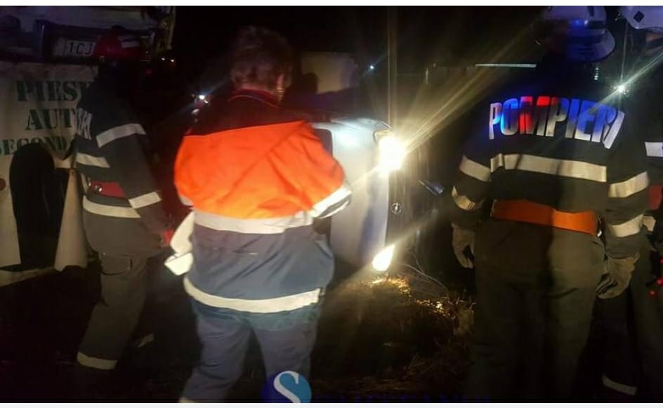 Două autoturisme Opel, unul înmatriculat în Cluj iar celălalt în Alba, au intrat în coliziune, cel din urma răsturnându-se în urma impactului în afara carosabilului.