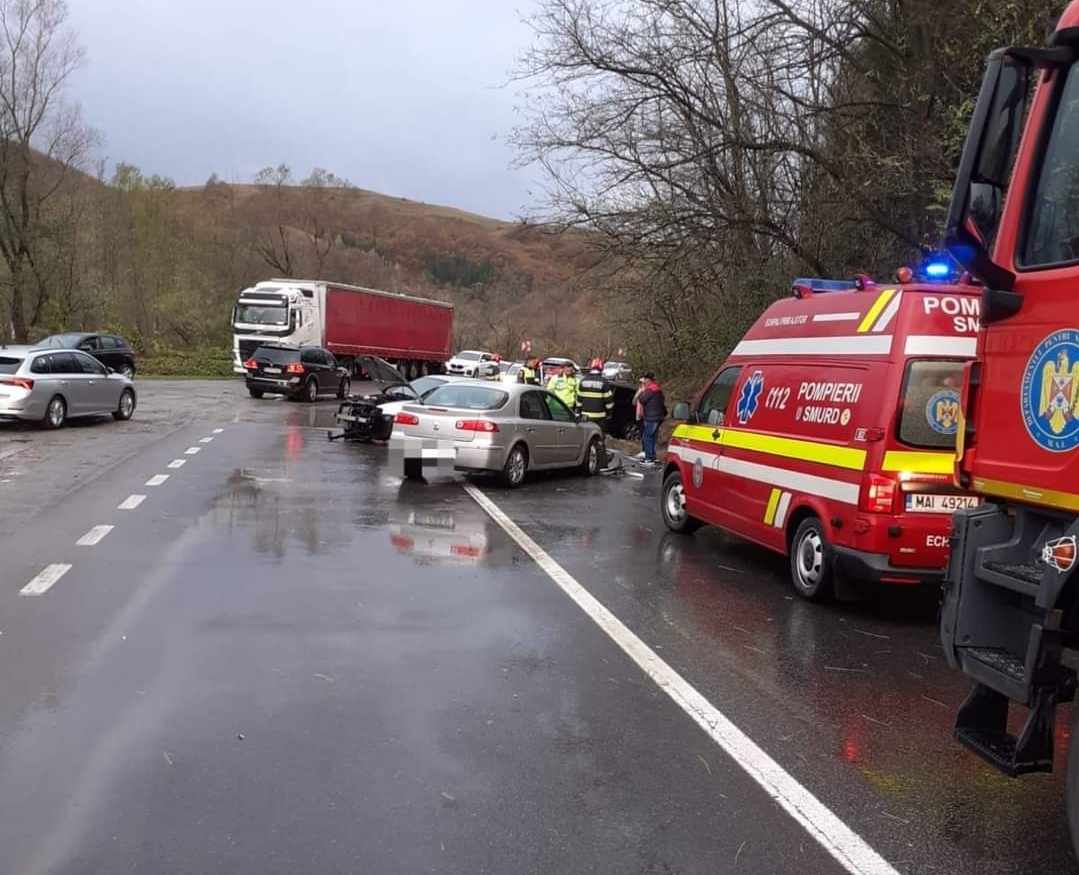 ISU CLUJ: Pompierii din cadrul Detașamentului Huedin intervin în aceste momente la un accident rutier petrecut pe raza localității Bologa. Din primele date, în accident au fost implicate trei autoturisme, însă din fericire nu au existat victime încarcerate. O femeie, conștientă și cooperantă, primește îngrijiri medicale. În paralel, pompierii asigură măsurile specifice de prevenire și stingere a incendiilor la locul accidentului. Din partea ISU Cluj, la misiune iau parte o autospecială cu modul de descarcerare și o ambulanță SMURD.