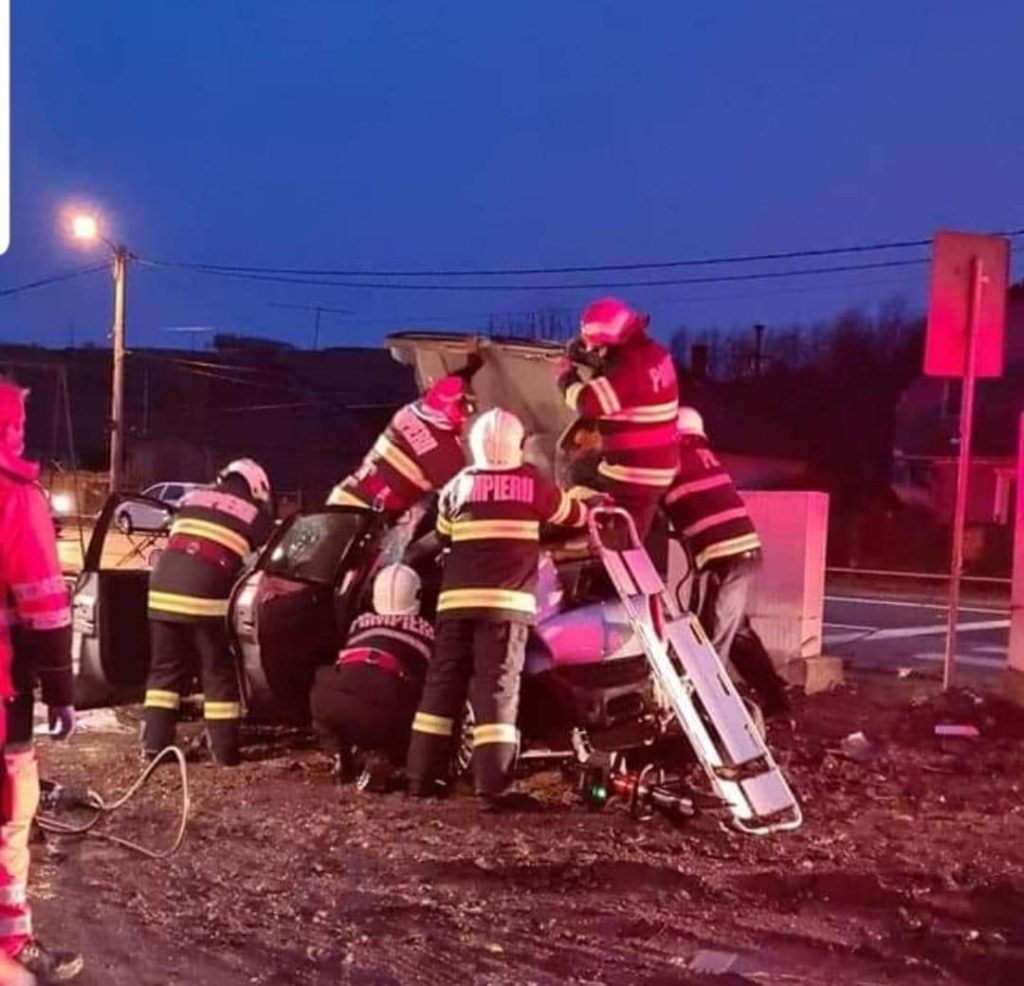 În urma impactului, autoturismul a fost proiectat pe sensul opus de mers, unde a intrat în coliziune cu un stâlp.