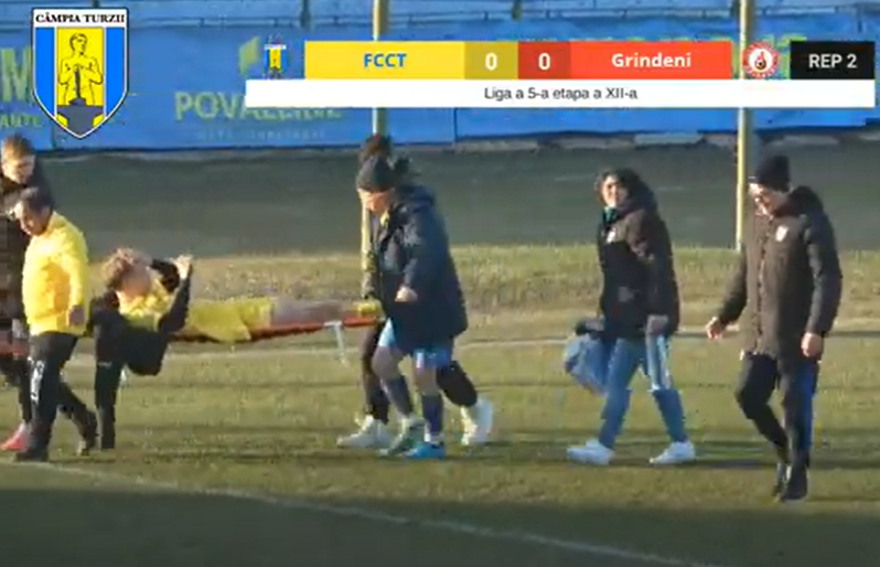 În repriza a doua la scorul de 0-0, Denis Baciu a fost accidentat foarte grav, portarul celor de la Grindeni a intrat cu talpa pe sus direct în fotbalistul de la Câmpia Turzii rupându-i piciorul, acesta a fost transportat de urgență la un spital din Cluj pentru operație. În aceste momente se așteaptă o echipă de medici pentru salvarea piciorului lui Denis Baciu.