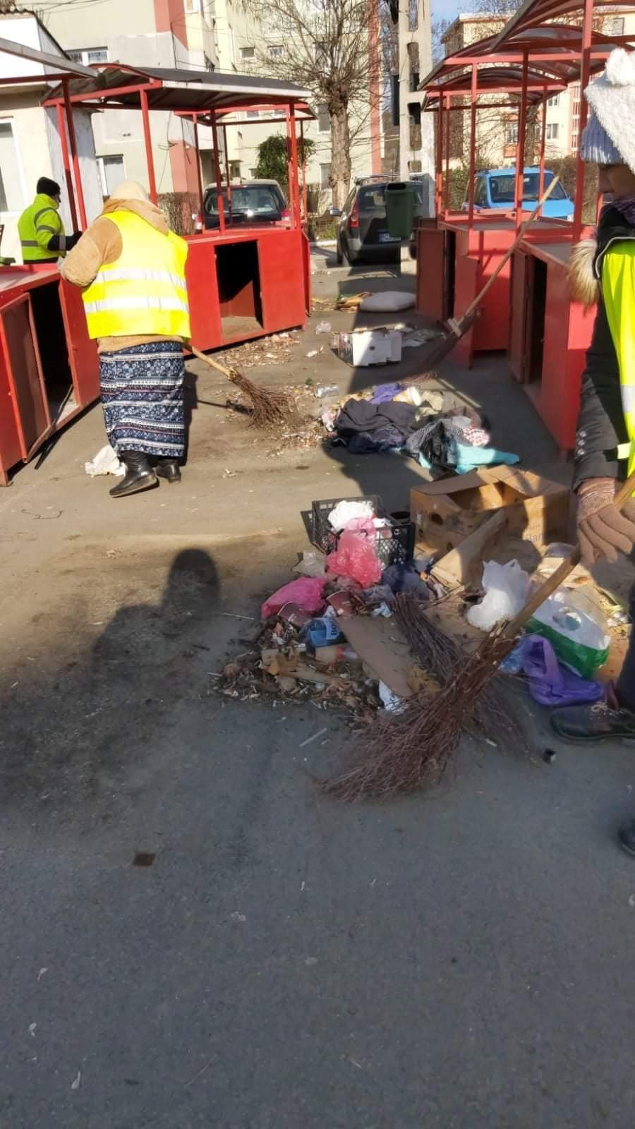 Împreună cu persoanele aflate la muncă în folosul comunității, echipele de la salubritate au intervenit pentru curățarea standurilor din piață, de unde au fost colectați saci plini de gunoaie. De asemenea, a fost măturată manual întreaga zonă.