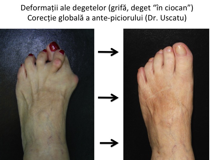 Dr. Marius Uscatu este medicul ce vă poate trata de: monturi, bătături plantare, metatarsalgii, degete în ciocan (grife digitale), picior scobit, picior plat, probleme ale călcâiului, în general picior deformat, coxartroză, gonartroză, patologia degenerativă/traumatică a articulației umărului, patologia degenerativă/traumatică a articulației genunchiului( meniscale si/sau ligamentare), leziuni traumatice osteo-articulare membru superior/inferior în general.