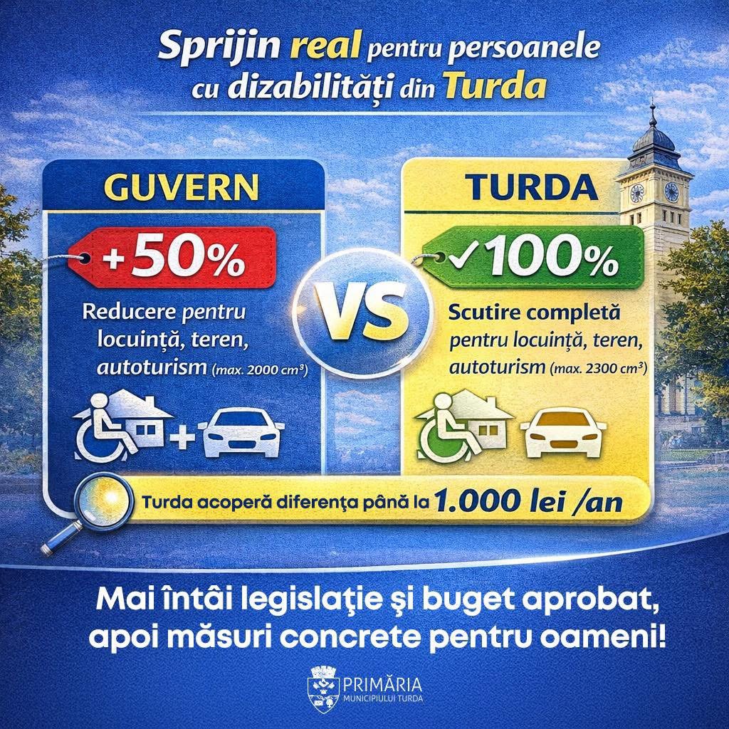 Diferența dintre facilitățile prevăzute de cadrul național și sprijinul financiar complet propus la nivel local ar urma să fie acoperită de municipiul Turda, în limita a 1.000 lei/an pentru fiecare beneficiar.