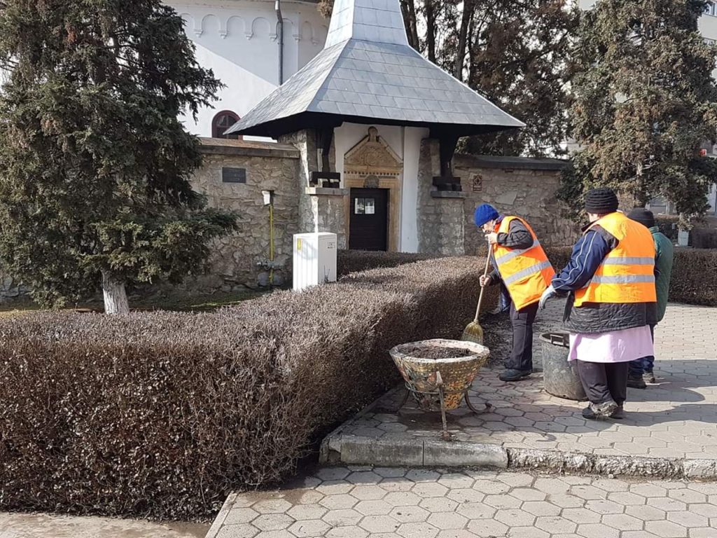 În paralel cu activitatea automăturătorii, personalul Companiei de Salubritate continuă măturatul și răzuitul manual al bordurilor și al carosabilului, acolo unde nu se poate interveni cu utilajul.