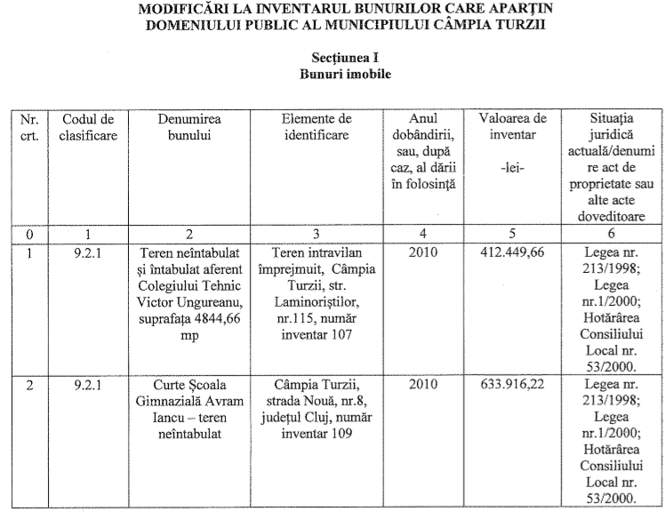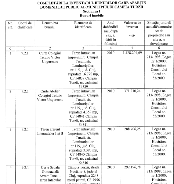 Consilierii locali au votat, la ședința extraordinară din 16.02.2018, modificarea și completarea inventarului Domeniului Public al municipiului Câmpia Turzii, după cum urmează: