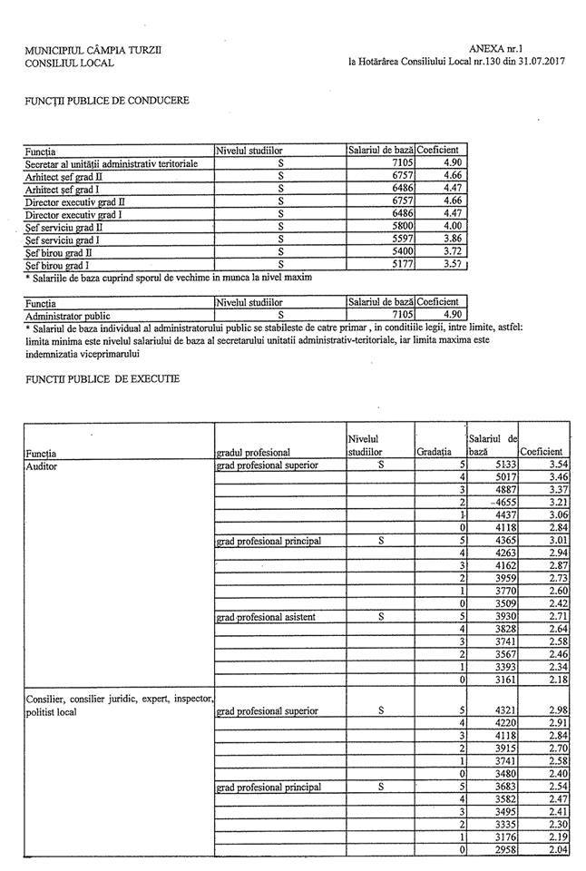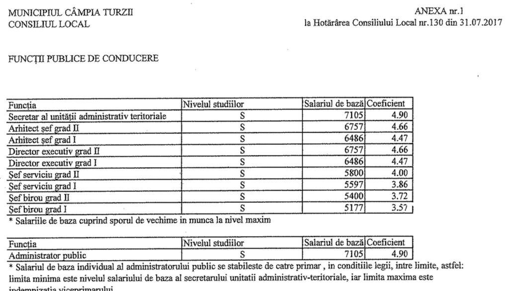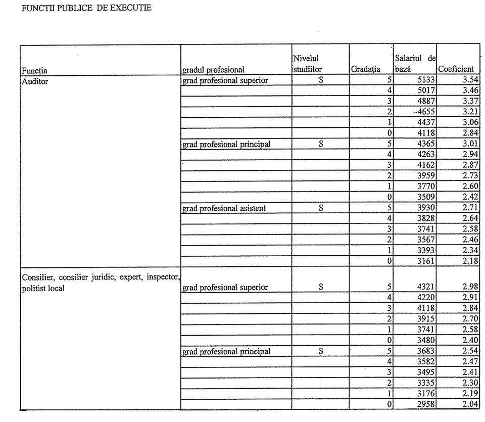 Noile salarii din administrația publică locală sunt conform tabelului: