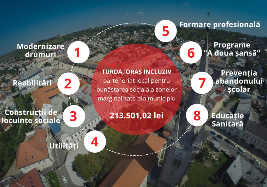 - TURDA, ORAȘ INCLUZIV – parteneriat local pentru bunăstarea socială a zonelor marginalizate din municipiu (POCU 5.1)