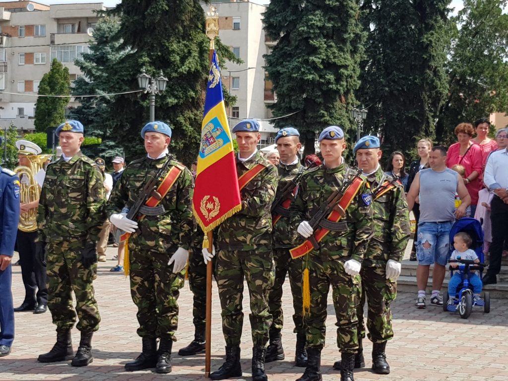 Apoi a urmat acordarea onorului, prezentarea raportului, salutul drapelului de luptă şi trecerea în revistă a Detașamentului de Onoare.