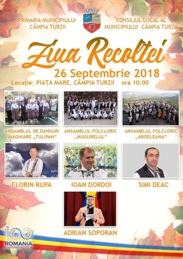 În acest an, administrația locală de la Câmpia Turzii organizează o nouă ediție a festivalului „Ziua Recoltei”, care va avea loc miercuri, 26 septembrie, de la ora 10:00 în Piața Unirii (piața mare).