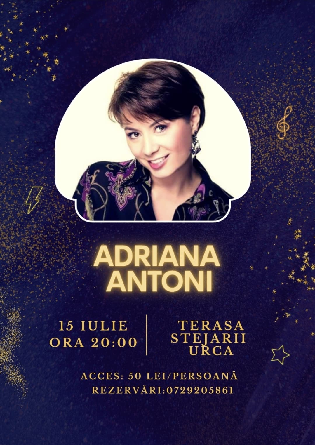 Una dintre cele mai bune voci din lumea mare a evenimentelor din România vine la Terasa Stejarii din Urca, pentru a susține un super recital, live 100%. Adriana Antoni este recunoscută național și internațional pentru vocea sa puternică și pentru show-ul pe care le face la fiecare eveniment unde este invitată.