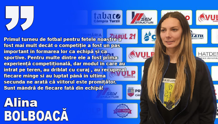 „Primul turneu de fotbal pentru fetele noastre a fost mai mult decât o competiție – a fost un pas important în formarea lor ca echipă și ca sportive. Pentru multe dintre ele a fost prima experiență competițională, dar modul în care au intrat pe teren, au driblat cu curaj, au recuperat fiecare minge și au luptat până în ultima secundă ne arată că viitorul este promițător. Sunt mândră de fiecare fată din echipă!”