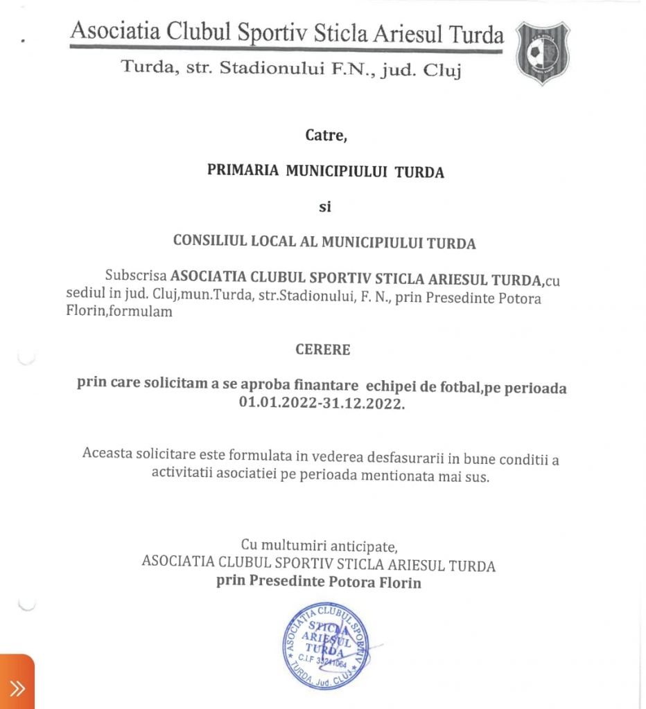 Acesta prevedea aprobarea, începând cu luna ianuarie 2022, contribuția financiară lunară din partea administrației locale către clubul sportiv a sumei de 100.000 de lei lunar, sumă care este egală cu anii trecuți.