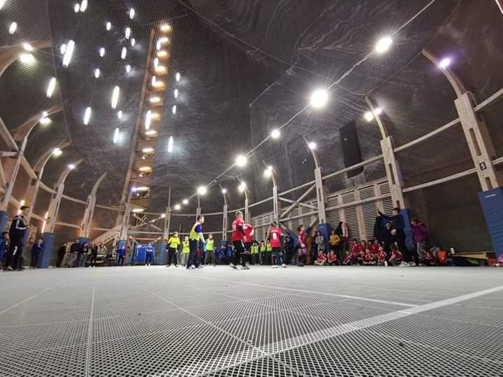 Echipele de minihandbal de la AHC Potaissa Turda și HC Beldiman Arad au susținut astăzi un meci demonstrativ pe terenul de sport din interiorul minei Rudolf.