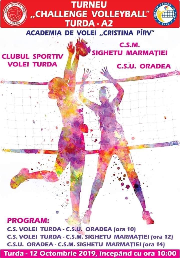 Așadar, turneul va începe în data de 12 octombrie, începând cu orele 10:00, la Sala Sporturilor a școlii Ioan Opriș din Turda. Toata suflarea turdeană este așteptată la „Challenge Volleyball”, pentru a susține echipa turdeană.