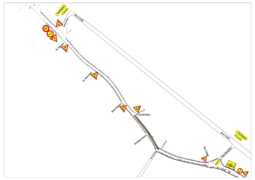 Traficul dinspre Cluj-Napoca pe direcția Alba Iulia și Târgul Mureș va continua să se desfășoare pe strada Clujului – strada Ion Corvin – strada Gheorghe Barițiu.