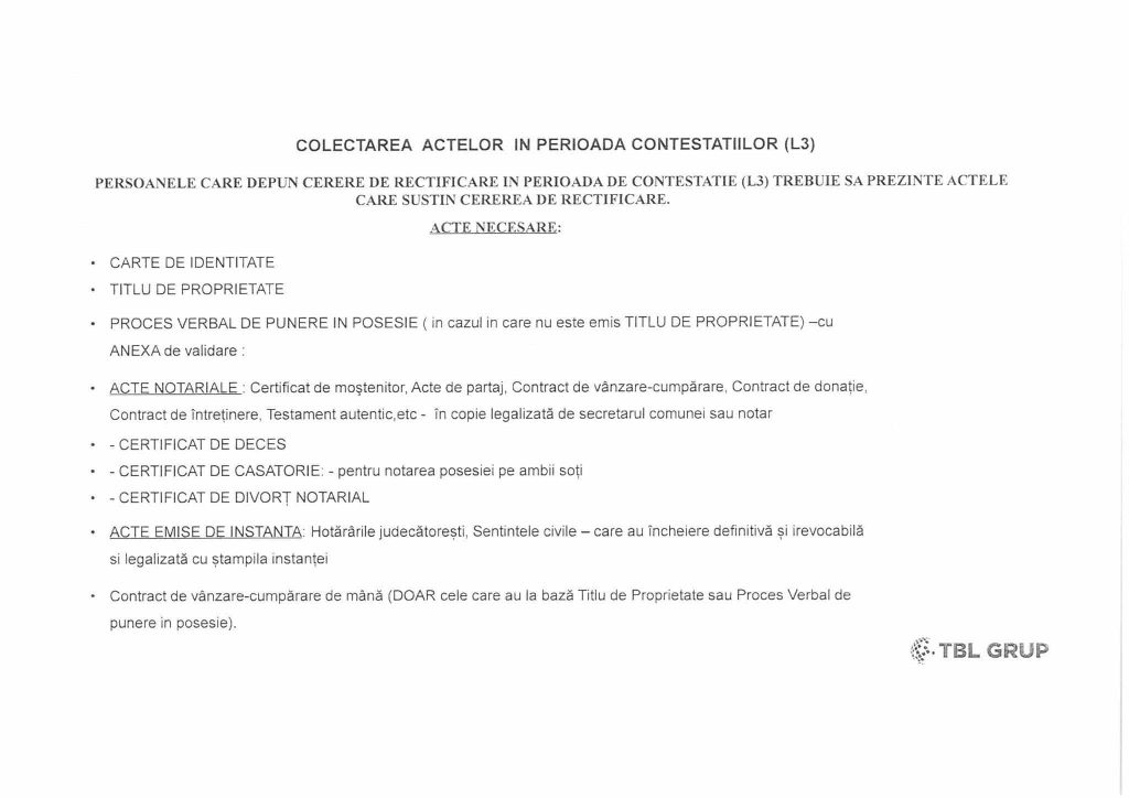 Anexăm lista cu documentele ce susțin cererea de rectificare.