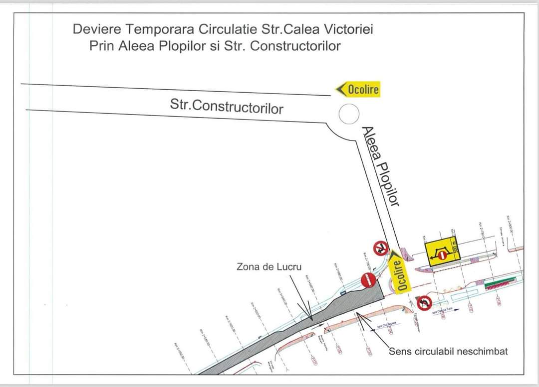 Devierea circulației se va face pe strada Aleea Plopilor – strada Constructorilor (mal râul Aries).