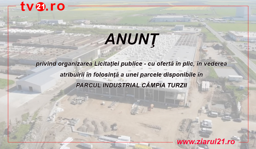 ANUNŢ privind organizarea Licitaţiei publice – cu ofertă în plic, în vederea atribuirii în folosinţă a unei parcele disponibile în PARCUL INDUSTRIAL CÂMPIA TURZII