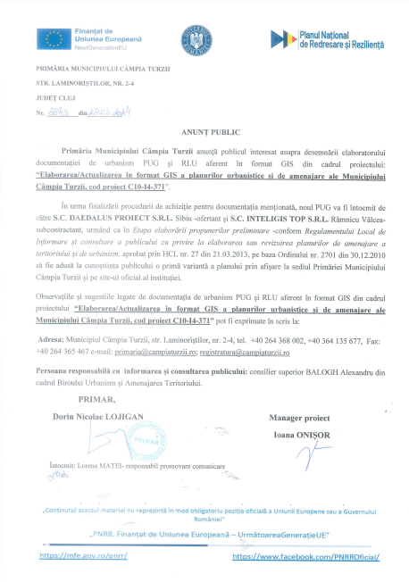 Actualitate Anunț public – Elaborarea/Actualizarea în format GIS a panurilor urbanistice și de amenajare ale Municipiului Câmpia Turzii ziarul21.ro 28 martie 2024, 10:49 Share Tweet Share Share Email Comments Anunt public GIS Related Items:Anunț public - Elaborarea/Actualizarea în format GIS a panurilor urbanistice și de amenajare ale Municipiului Câmpia Turzii, Featured Share Tweet Share Share Email Click to comment Leave a Reply Anulează răspunsulComentariile trebuie să respecte regulile de utilizare.Adresa ta de email nu va fi publicată. Câmpurile necesare sunt marcate cu *Comentariu * Nume * Email * Δ Acest site folosește Akismet pentru a reduce spamul. Află cum sunt procesate datele comentariilor tale.