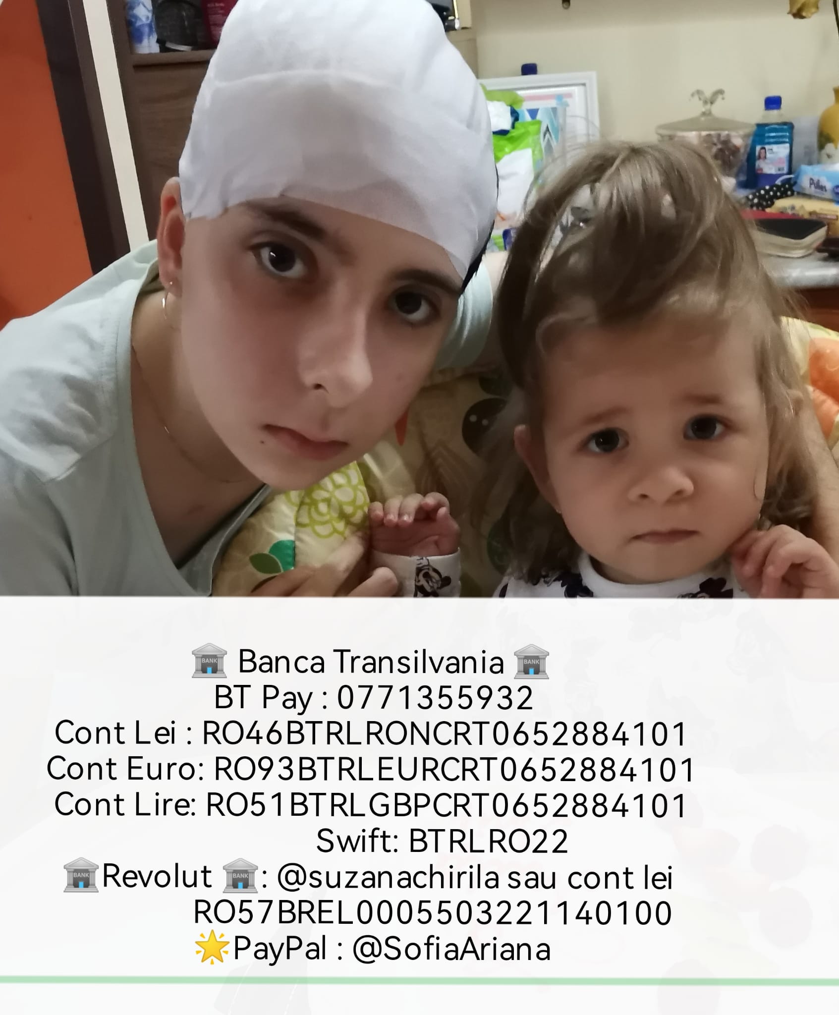De asemenea, țin să mulțumesc încă o dată pe această cale și acelor persoane care au fost acolo de la început până acum. Pentru că multe au fost, puține au rămas.. Dar nu ne pierdem încrederea în Dumnezeu pentru că El lucrează prin oameni! Pentru noi în momentul acesta orice ajutor contează. Vă rugăm să ne acordați 5 minute pe zi, să ne ajutați să ne facem cunoscută povestea, să adăugăm mai multe persoane în grup, să distribuiți în grupuri sau în rândul prietenilor,dacă aveți lucruri pe care nu le mai folosiți și doriți să le scoateti la licitație sau dacă aveți cunoștințe care au firme și doresc să redirecționeze impozitul pe profit sau vor să facă sponsorizări, orice e binevenit! Pentru că suntem deschiși sugestiilor dvs, am reușit să deschidem și un cont de BT pe numele Arianei, pt cei cărora le e mai ușor cu acest cont decât cu cel de Revolut!