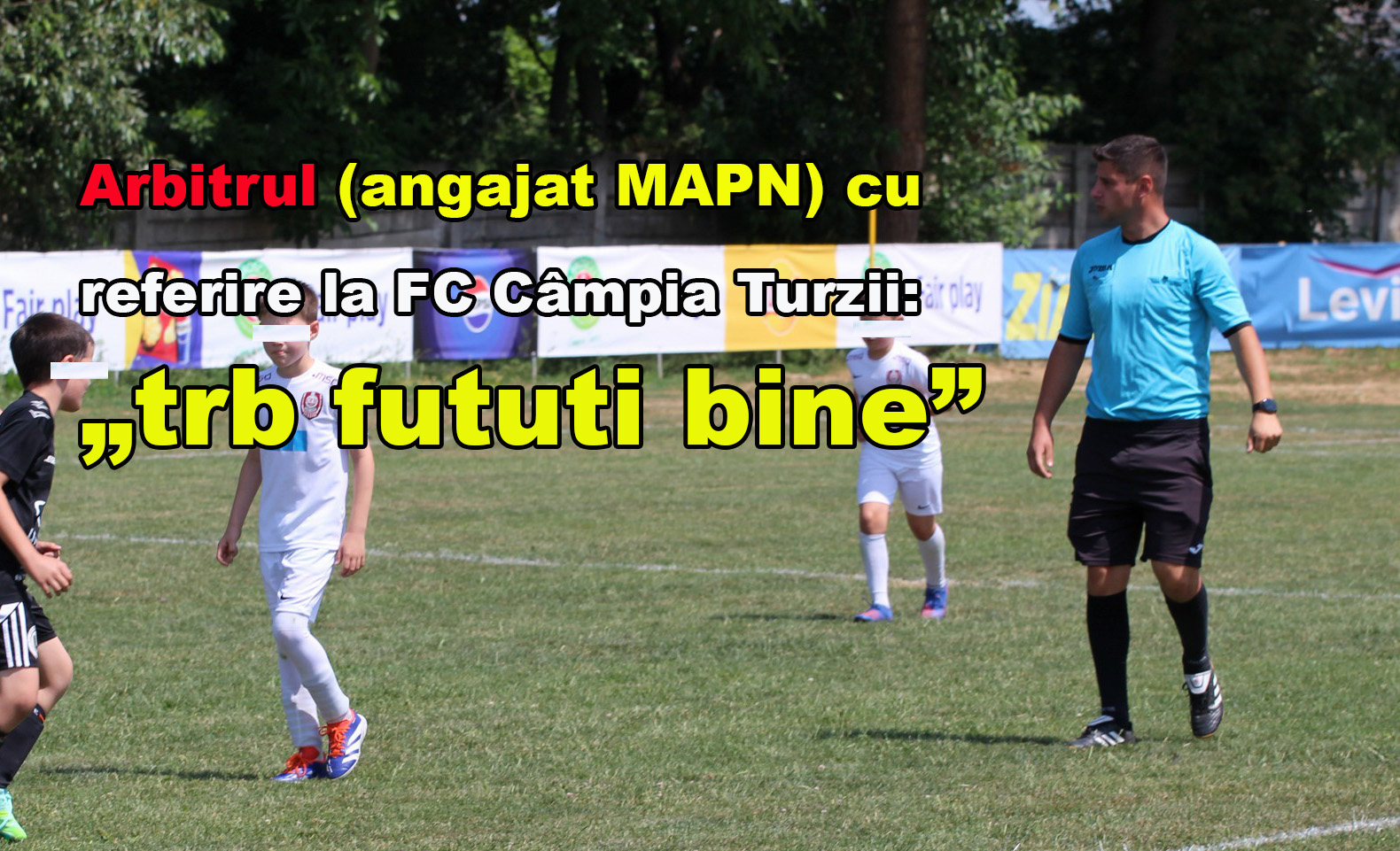 Într-un mesaj atribuit arbitrului Baciu Nicolae Cristian (angajat MAPN), se vorbește despre FC Câmpia Turzii într-un limbaj suburban: „trb futuți bine”. O afirmație revoltătoare, care ridică serioase semne de întrebare asupra obiectivității și integrității arbitrilor din zonă.