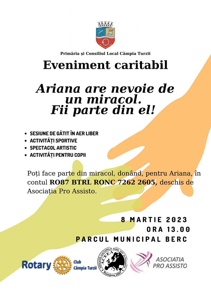 De aceea, Asociația Pro Assisto, Asociația Culturală Euro Est Alternativ, în parteneriat cu Rotary Club Câmpia Turzii și cu susținerea Primăriei Municipiului Câmpia Turzii, organizează evenimentul caritabil „*Ariana are nevoie de un miracol. Fii parte din el!*”.