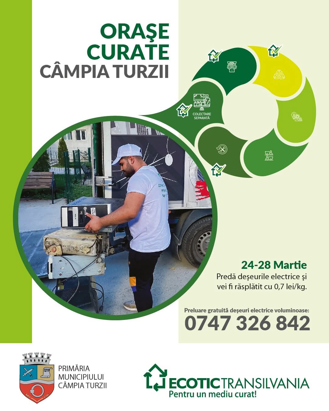Locuitorii din Câmpia Turzii sunt rugați să sune la numărul de telefon 0747-326.842 pentru a plasa o comandă de preluare de la domiciliu a deșeurilor electrice (minim 10 kg).
